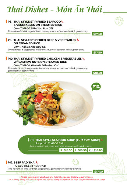 Also serving Thai and Chinese dishes like Tum Yum and Chow Mein.